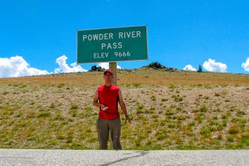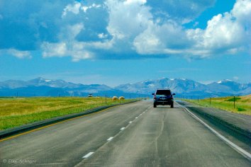 Mit der weiteren Fahrt wird es dann langsam etwas kühler und wir können in der Ferne die teilweise schon schneebedeckten Gipfel der Rocky Mountains sehen. Die höchste Stelle überqueren wir am Powder River Pass, wo auf knapp 3000 Meter Höhe schon ein recht frischer Wind pfeift.