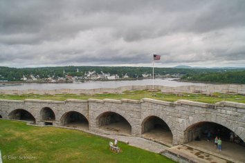 Unterwegs legen wir bei Bucksport einen kurzen Zwischenstopp ein und besichtigen das historische Fort Knox. Dieses wuchtige Fort wurde während der Grenzstreitigkeiten zwischen den USA und Kanada in den 1840er Jahren neben die Mündung des Penobscot River gesetzt — die Feuertaufe blieb ihm allerdings erspart.
