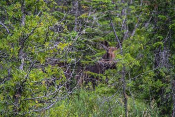Wir sehen auf dieser Strecke zuerst eine Elchkuh mit Jungem und später sogar noch einen Elchbullen.
