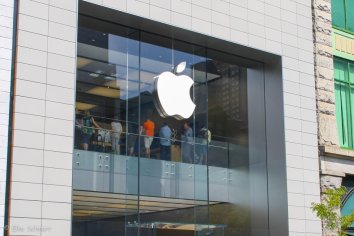 Wir sind erst wenige Minuten unterwegs, als es schon zur ersten Zwangspause kommt, denn wir passieren einen Apple-Store.
