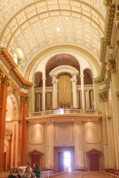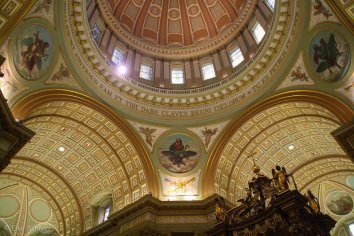 Hier schauen wir uns dann die Kathedrale Marie Reine du Monde an. Besonders beeindruckend sind die mächtigen Säulen der Frontseite und das großzügige Innere mit einem goldüberzogenem Baldachin.