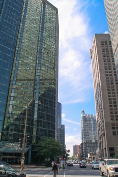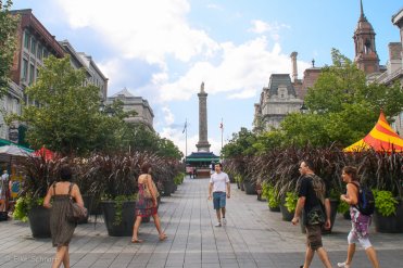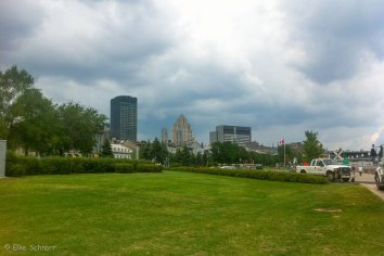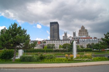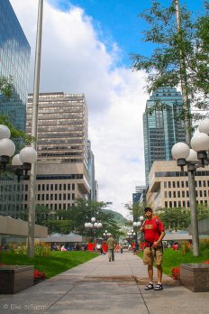 Wir bummeln durch Montreal Downtown zwischen den Hochhäusern hindurch und laufen weiter über den Boulevard René-Lévesque bis zum Dorchester Square.