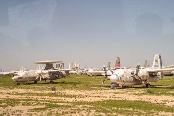 Auch hier erfahren wir während der Fahrt wieder kleine Geschichten zu den einzelnen Flugzeugen. Leider kann man bei dieser Tour nur aus dem Bus heraus fotografieren — aber beeindruckend ist das Ganze auf jeden Fall — schon alleine durch die Menge an Flugzeugen, die hier in Reih’ und Glied aufgestellt sind.