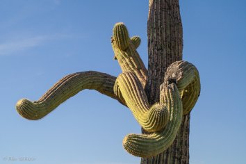 Aber auch vom Auto aus bzw. an den einzelnen Haltepunkten bekommen wir Hunderte schöner Exemplare der Saguaros zu sehen. Keiner ist wie der andere und ab und zu geht unsere Phantasie etwas mit uns durch. Gewisse Assoziationen sind beim Anblick dieser Kakteen unvermeidlich