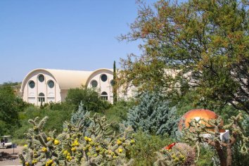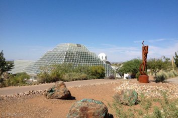 Unser erstes Tagesziel für heute ist die Biosphere II — eine gigantische Stahl- und Glaskonstruktion inmitten der Sonora-Wüste.