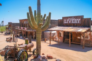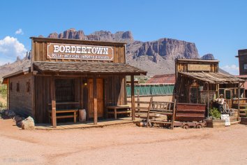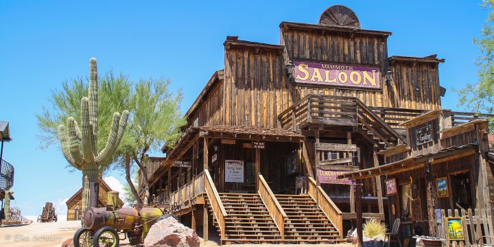 Wir setzen unsere Fahrt fort und machen unseren nächsten Halt an der 1890 entstandenen Goldfield Ghost-Town. Als wir aus unserem wohltemperierten Auto aussteigen, trifft uns schier der Schlag. Ist das eine Hitze