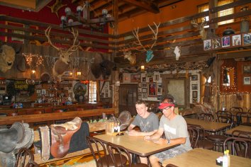 Wir schlendern ein wenig herum, schauen die alten Gebäude an, können es aber bei den Temperaturen nicht wirklich genießen. Stattdessen lechzen wir nach Abkühlung und landen im Saloon. Hier ist es deutlich angenehmer und wir nehmen einen kleinen Mittags-Snack zu uns.