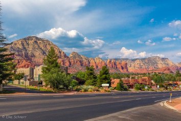 Wir checken für die nächsten zwei Tage im Orchards Inn ein. Die Lage des Hotels ist super zentral, die Zimmer sind top in Ordnung und beim Blick von unserem Balkon kann ich den Satz, den ich mal irgendwo gelesen habe, gut verstehen: „God created the Grand Canyon, but he lives in Sedona“
