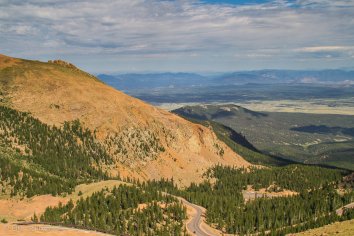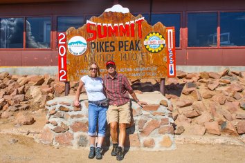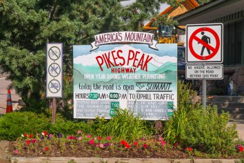 Der Pikes Peak ist ein recht einfach zu „bezwingender“ Berg: Für 12 USD pro Person kann man mit dem Auto bis zum Gipfelplateau auf 4.289 Meter hoch fahren. Die serpentinenreiche Strecke ist 19 Meilen lang und etliche Haarnadelkurven, steile Abstürze und viele schöne Aussichtspunkte machen die Fahrt für uns zu einem echten Erlebnis. Und unterwegs sehen wir sogar noch einige der Bergbewohner: