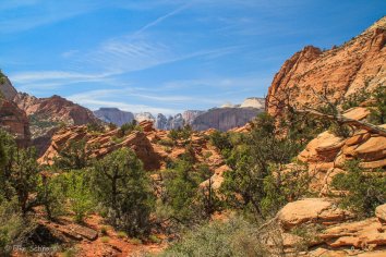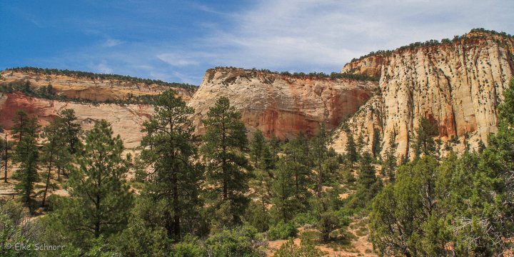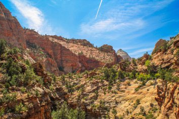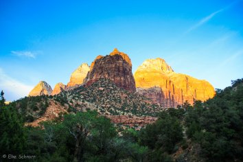 Das ändert sich schlagartig, als wir auf der Weiterfahrt in den Zion NP kommen. Dieser zieht uns mit seinen mächtigen Felsdomen und seiner Farbenpracht sofort wieder in seinen Bann und wir genießen beim Durchfahren das unglaubliche Panorama.