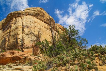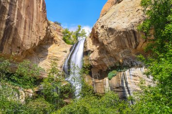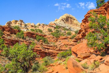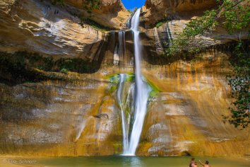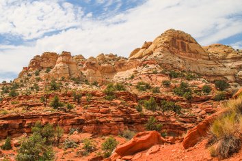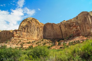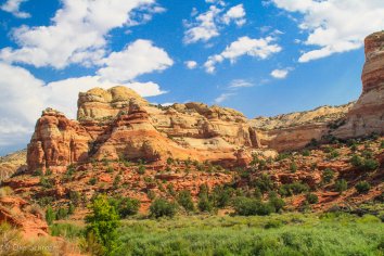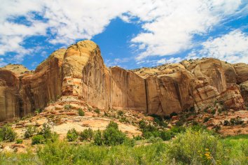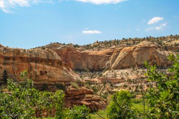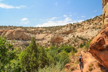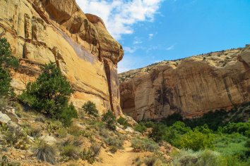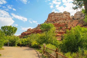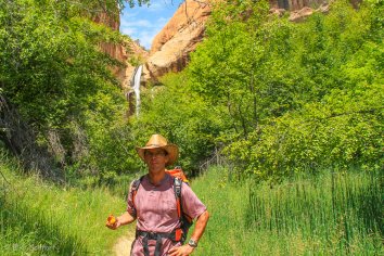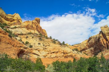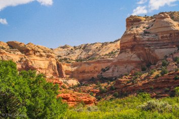 Der Weg gefällt uns sehr gut: er führt durch den Calf Creek immer am Fluss entlang, das Wasser plätschert, die Vögel zwitschern und alles ist so grün, dass man — abgesehen von der Wärme — kaum noch glauben kann, dass man in der Wüste ist.