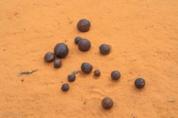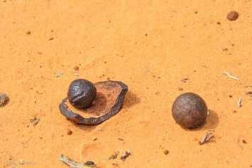 Mit den GPS Koordinaten aus dem Internet finden wir den Trailhead recht schnell und marschieren los. Wir laufen über ein Feld, auf dem schon recht viele der Moquis herumliegen — direkt auf den Hügel zu, an dem sie zu Hunderten vorhanden sein sollen.