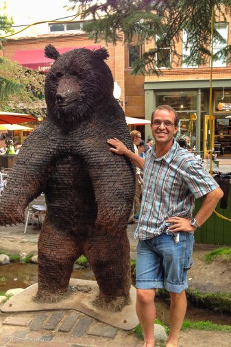 Wir sammeln Christi im Hotel ein und fahren um 10:00 Uhr mit dem Bus zu den Maroon Bells. Durch ein heute und morgen hier rund um Aspen stattfindendes Race — die USA Pro Cycling Challenge — sind alle möglichen Straßen gesperrt und Auto fahren und Parken ist eine mittlere Katastrophe — da kommt der Bus gerade recht.