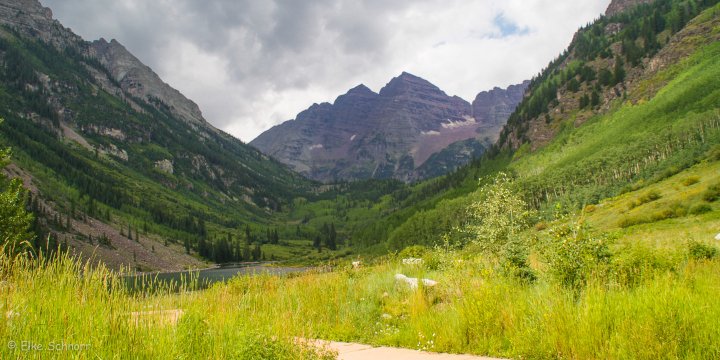 So sind die Maroon Bells halt nicht wirklich „maroon“ und zum Fotografieren taugt das Wetter auch nicht. Schön anzuschauen sind sie aber trotzdem und wir laufen zwei Stunden lang sehr gemütlich um den See herum.