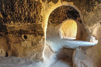 Die Felswohnungen sehen in dem löchrigen Tuffstein recht interessant aus und in einige der Behausungen kann man über feststehende Leitern sogar einsteigen. Viel zu sehen gibt es in den Höhlen natürlich nicht, aber man kann sich mit etwas Phantasie doch eine recht gute Vorstellung machen.