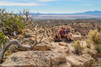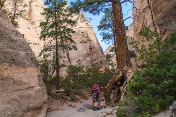 Christi zeigt ziemlichen Respekt und hat gleich gar keine große Lust mehr, hier in der Gegend zu wandern. Aber er ist natürlich auch neugierig auf die Tent Rocks und so ist Umkehren gar kein Thema.