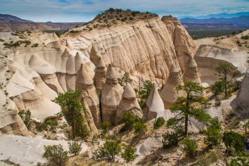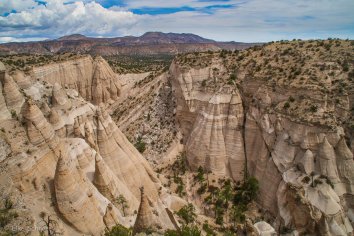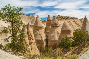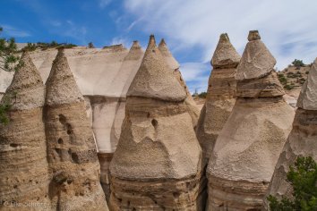 Charakteristisch für das Gebiet der Kasha Katuwe Tent Rocks sind die vielen kegelförmigen Felsen, die an große Zelte erinnern und eine Höhe von bis zu 30 Metern erreichen. „Kasha Katuwe“ bedeutet übrigens in der Pueblo Sprache soviel wie „Weiße Klippen“.