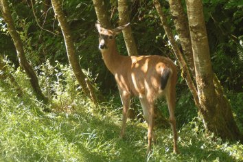 Uns läuft allerdings nur ein einzelnes Reh über den Weg, welches aber überhaupt nicht schüchtern ist und stattdessen nett für uns posiert.