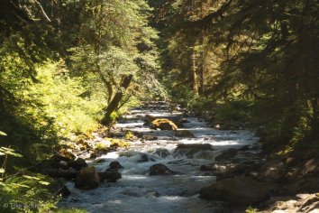 Von hier wandern wir fast drei Stunden lang auf dem Lover’s Lane Trail entlang des Sol Duc River und kommen an einigen schönen Wasserfällen vorbei — u.A. an den Sol Duc Falls — die hier die Hauptattraktion sind. Wenn man nicht ganz so viel laufen möchte, erreicht man diese auch auf einem deutlich kürzeren Trail.