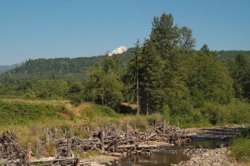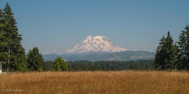 Unterwegs füllen wir beim Walmart noch unsere Vorräte auf und müssen wegen einer Sperrung des Highway 7 einen längeren Umweg fahren. Das ist allerdings gar nicht schlimm, denn so erhaschen wir auf der Fahrt schon erste Blicke auf den Mt. Rainier: