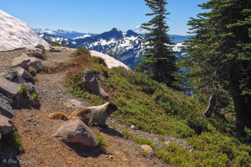 Aber dafür haben wir unterwegs wunderbare Ausblicke auf den Mt. Rainier und die umliegenden Berge.