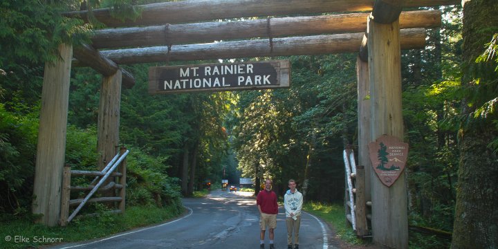 Wir frühstücken in unserer Cabin und sind um 8:45 Uhr startklar. Bis zum Parkeingang sind es nur ein paar hundert Meter und so kann das Abenteuer Mt. Rainier sofort beginnen.