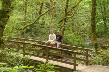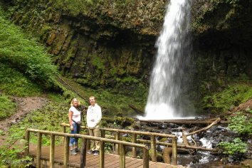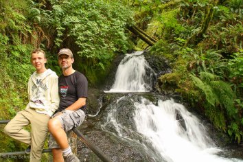 Unseren nächsten Stopp machen wir an den Latourell Falls: Die Lower Falls liegen direkt an der Straße und um die Upper Falls zu sehen, muss muss man eine kleine Wanderung machen. Wir laufen den Round Trail von etwa zwei Meilen und schauen uns beide Wasserfälle an: