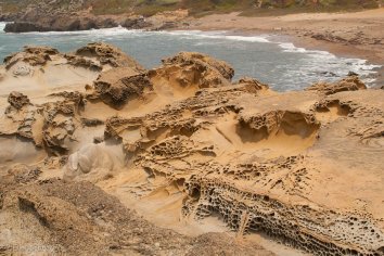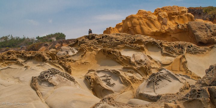 Am Pebble Beach dagegen haben wir Glück: es herrscht gerade Ebbe und so machen wir hier noch einen längeren Stopp und schauen uns die tollen Tafonis an, in denen sich viele bunte Steinchen angesammelt haben. Wir können uns gar nicht satt sehen, so schön ist es hier und wir knipsen was das Zeug hält.