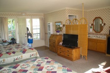 Danach geht es dann erst mal zum Checkin nach Mendocino in unser vorgebuchtes Hotel Blackberry Inn. Auch das gefällt uns auf den ersten Blick sofort sehr gut. Die Hotelanlage ist wie eine historische kleine Stadt aufgemacht — es gibt einen Saloon, einen Barber’s Shop und viele andere Häuser. Wir sind im Sweet Shop untergebracht und rundum zufrieden.