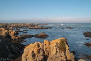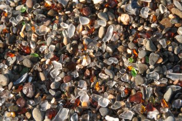 Unseren ersten Stopp machen wir am Glass Beach und das Timing ist diesmal echt gut: Vom morgentlichen Nebel, den wir bis jetzt an der Küste immer hatten, ist gerade überhaupt nichts zu sehen und so verbringen wir fast eine Stunde am Beach, bestaunen die Gewalt der Wellen und halten Ausschau nach den angeschwemmten Glassteinen, die Namensgeber für diesen Beach sind.
