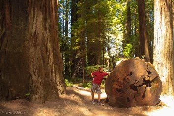 Das Highlight hier ist der Chandelier Tree — ein 2400 Jahre alter Redwood Baum mit sechs Metern Durchmesser, durch den im Jahr 1930 ein Tunnel gesägt wurde, so dass Autos hindurch fahren können.