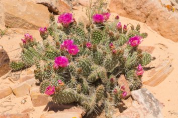 Wir bestaunen die wunderschön blühenden Kakteen links und rechts der Straße, ab und zu springt ein Häschen über den Weg und wir sehen sogar eine Klapperschlange. Schon die Anfahrt ist also ein tolles Erlebnis.