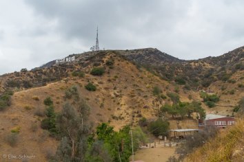 Nachdem wir den Schriftzug von hinten betrachtet haben, laufen wir an der Gabelung noch den alternativen Weg, der zur Front des Hollywood Signs führt. Nicht ganz so nah dran wie von oben — aber man hat auch hier einen sehr schönen Blick darauf: