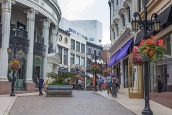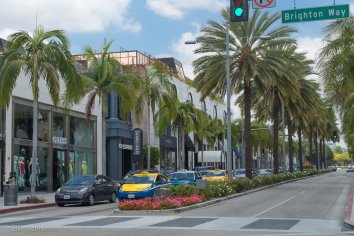 Wir halten für einen kurzen Zwischenstopp an und wandeln einmal durch die exklusive Shoppingzone im „Golden Triangle“. Hier am Rodeo Drive haben sich so ziemlich alle Firmen mit Rang und Namen der High Society niedergelassen — Tiffany, Vuitton, Gucci, und wie sie alle heißen… Allerdings schauen wir nur von außen, denn das hier ist eindeutig nicht unsere Liga.