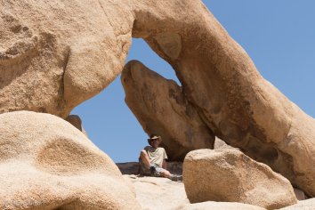 Nach den unvermeidlichen Fotos machen wir hier noch eine kurze Picknickpause mit Kaffee und Keksen bevor es weitergeht zum White Tank Campground. Hier startet die Trail Loop zum Arch Rock. Ein kurzer aber ganz toller Weg mit wunderbaren Aussichten und Kraxeleinlagen — wir bekommen direkt Lust, mal hier auf einem Campground zu übernachten.
