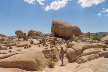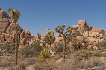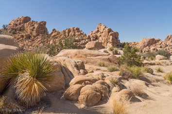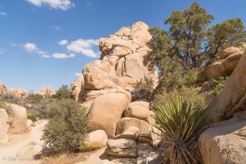 Der Hidden Valley Trail führt uns dann auf einem Loop durch den Talkessel an vielen interessanten Gesteinsformationen vorbei, die mit wunderschönen Kakteen, Joshuas und Yuccas dekoriert sind. Ein gemütlicher Spaziergang von einer Meile, der tolle Fotomotive bietet.