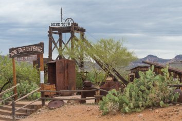 Ziel für heute ist im Wesentlichen der Apache Trail und so fahren wir gen Osten. Nach einer halben Stunde kommen wir an der Apache Junction an und kurz darauf sind wir an der Goldfield Ghost Town, einer ehemaligen Goldgräberstadt von 1890.