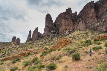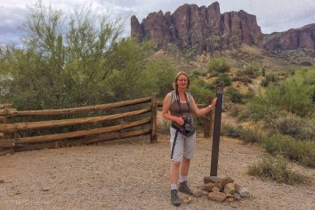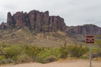 Wir schnüren unsere Wanderschuhe und machen uns auf, den majestätischen Felsen der Superstition Mountains auf dem Treasure Loop Trail ein wenig näher zu kommen. Es weht eine angenehme Brise und so ist das Wandern durch die Wüstenlandschaft bei der Wärme gar nicht wirklich anstrengend. Knapp 90 Minuten brauchen wir für den Rundweg zum Fuße des Flatiron Massiv und können dabei tolle Ausblicke auf die Felsen, die Saguaros und die Umgebung genießen — richtig toll ist das hier.
