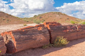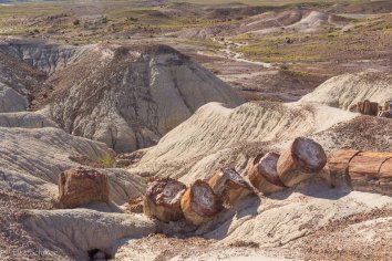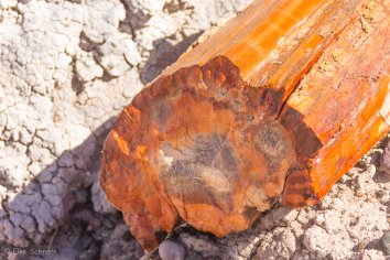 An manchen Stellen türmen sich versteinerte Holzabfälle wie in einem Sägewerk, an anderen wiederum sehen wir ganze versteinerte Baumstämme von bis zu 30 Metern Länge, an denen man sogar noch die Baumrinde erkennen kann.