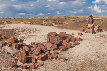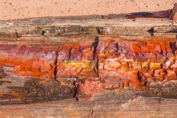 Das meiste versteinerte Holz entdecken wir jedoch nur wenig später im Crystal Forest. Auf dem kurzen Loop-Trail liegen besonders schöne und farbige Fossilien. Und wenn man sie mit ein bisschen Wasser nassmacht, kommen die Farben noch viel besser zur Geltung.