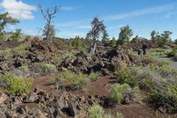 Bis zum Craters of the Moon sind es von hier aus nur knapp 20 Meilen und schon bei der Anfahrt können wir die riesigen Lavafelder entlang der Straße bewundern. Die vulkanische Aktivität des Gebietes ruht, ist aber noch nicht erloschen. Der letzte Ausbruch liegt etwa 2000 Jahre zurück.