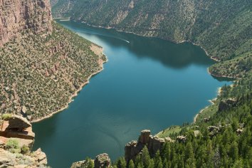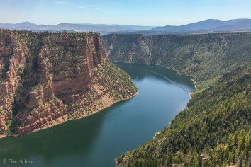 Im Visitor Center erkundigen wir uns nach Hiking Trails und schauen uns dann erst noch den Flaming Gorge Dam an. Dieser staut mit seinen 765.000 Kubikmetern Beton den Green River zu einem beachtlichen 146 Kilometer langen Reservoire an. Das Wasser ist hier übrigens sehr sauber und glasklar.