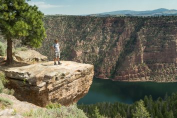 Gegen 11:00 Uhr marschieren wir los. Der Trail führt durch schattigen Kiefernwald immer entlang des Rim mit fantastischen Ausblicken auf den Canyon und einen flussähnlichen Ausläufer des Stausees. Das farbenfrohe Panorama ist echt beeindruckend.