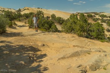 Eine amerikanische Familie mit vier kleinen Kindern, die ebenfalls dort parkt, ist offenbar deutlich schlechter vorbereitet, denn obwohl die Kinder am Parkplatz noch freudig herum springen und „Moonshine Arch, Moonshine Arch“ rufen, können wir sie später auf dem Trail nach der zweiten Abbiegung nicht mehr entdecken.