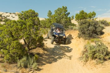 Stattdessen begegnen wir unterwegs einem ATV mit drei Mädels, die ganz offensichtlich eine Menge Spaß haben. Mit so einem Gefährt kann man auch die extrem sandige Strecke mit den hohen Steinstufen und tiefen Furchen noch bis zum Arch fahren, wofür unser Auto definitiv nicht geeignet ist.