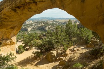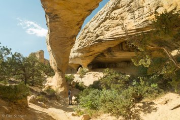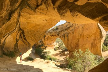 Als wir den Arch schließlich erreichen, sind wir erst mal sprachlos. So gewaltig und wunderschön hatten wir ihn uns nicht vorgestellt. Eigentlich war diese Wanderung ja nur eine Art „Lückenfüller“, weil die Sheep Creek Loop gesperrt war und nun wird sie zum Highlight des Tages. Der imposante Arch vor dem Alkoven ist ein regelrechter Multi-Arch und wir fotografieren ihn aus jeder Perspektive.