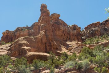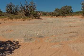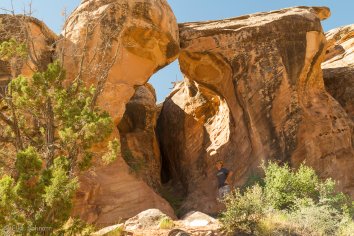 Auf der Weiterfahrt wird die Straße dann tatsächlich deutlich besser und so machen wir noch den kurzen Abstecher in den Four Arch Canyon, der mehr oder weniger direkt am Weg liegt. Wir parken unser Auto an der High Adventure Base und stromern ein wenig im Gelände herum.