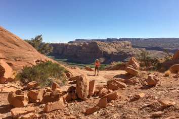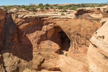 Und der kleine Umweg lohnt sich auf jeden Fall, denn auch der Pinto Arch ist ein sehenswerter Steinbogen und man hat von oben einen schönen Ausblick auf den Colorado River: