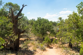 Gegen 9:00 Uhr brechen wir schließlich auf. Um den Tag etwas zu entspannen, haben wir das Programm für heute spontan gekürzt. Ursprünglich wollten wir ja den langen Trail zum Rattlesnake Canyon gehen — beginnend am Pollock Bench Trailhead — aber dafür hätten wir sehr viel früher losfahren müssen, da die Wanderung über 20 Kilometer lang ist.