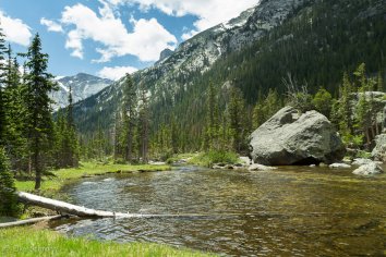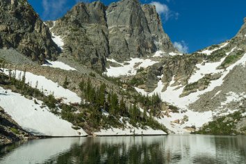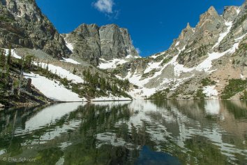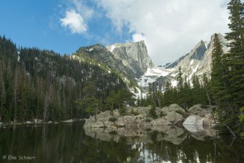 Später kommen wir am Dream Lake vorbei, der wunderschön in die Landschaft eingebettet ist. Umrahmt von Bergen, deren Gipfel sich im kristallklaren Wasser spiegeln, bietet er einen faszinierenden Anblick.